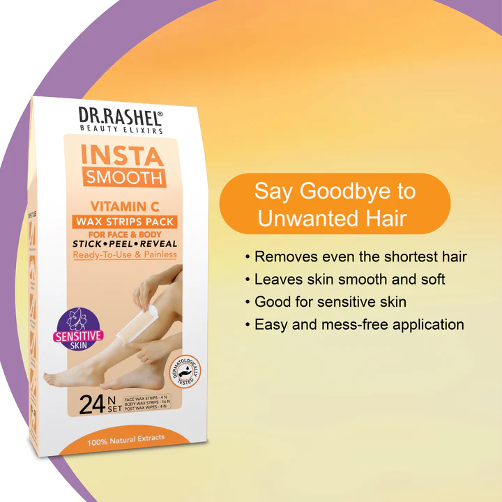 Brighten & smoothen with Dr. Rashel Insta Smooth Vitamin C Wax Strips for Face & Body!
